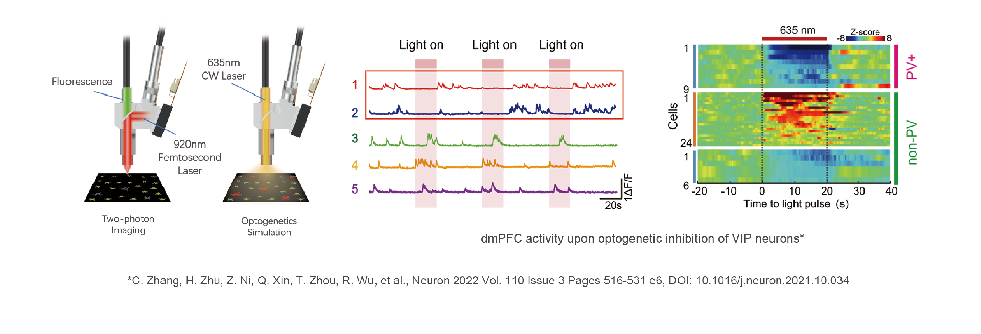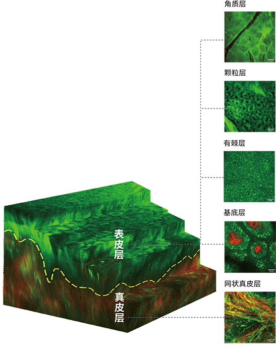 双光子显微成像技术利用显微物镜将百飞秒量级的近红外激光脉冲聚焦至样本内,在焦点处的荧光分子发生双光子吸收而跃迁至高能级,并在返回基态的过程中放出荧光光子。成像系统控制激光对样本进行三维扫描并记录每一个像素点位置收集到的光信号的光谱和强度信息,从而实现多通道3D层析成像。